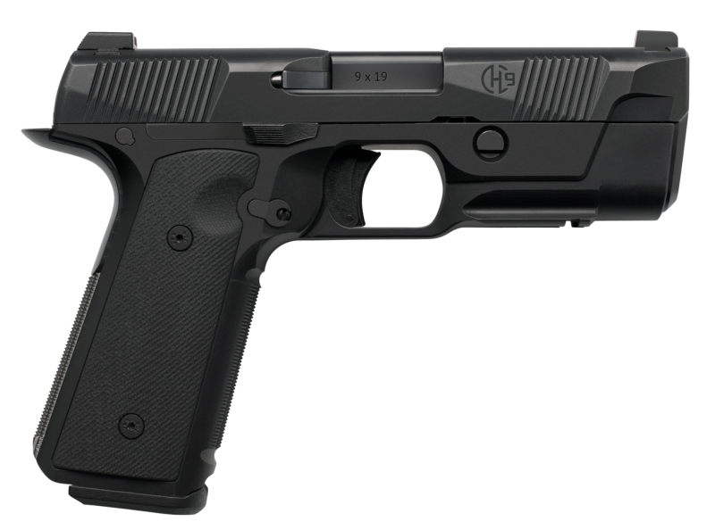 HUDSON MFG - H9 - SEMI-AUTO FULL SIZE STRIKER FIRED PISTOL - 9MM - 4.28" BARREL - STEEL - BLACK FINISH - G10 HZ GRIPS W/ HOGUE BACKSTRAP - 2 x 15 RND MAGS - TRIGGER SAFETY - TRIJICON FRONT SIGHT - AMBI SLIDE RELEASE - W/ RAIL