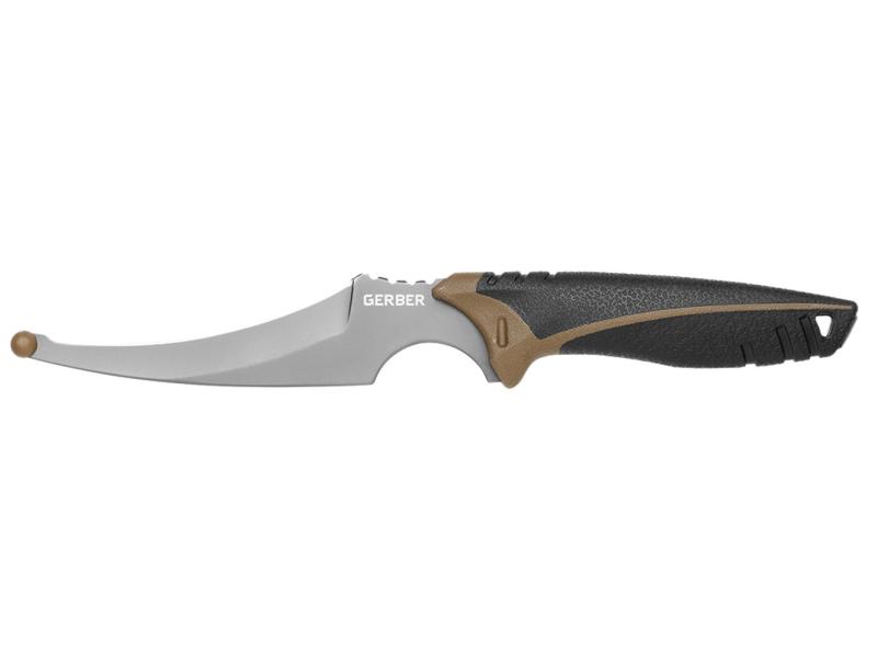 With a lightweight body directly molded onto the full tang blade, this knife is ideal for long and clean upward cuts. A hard plastic ball overmold tip ensures you never puncture your game. Created for quick field dressing, a sheath with sharpener is included.