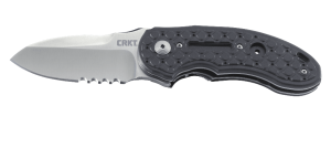 Flavio Ikoma's new rugged everyday carry folder is looking for a chance to flex its strength. An IKBS™ ball bearing pivot system with opening flipper smoothly deploys a beefy modified drop point blade, in plain edge or also available with Veff Flat Top Serrations®. Then the new patented ILS™ safety sets a pin between the frame and locking liner and you are just plain safer. Grab the heavy-duty waffle iron traction grip handle and good luck letting go.