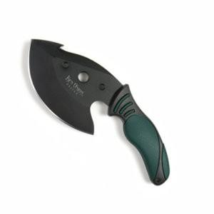 Unusual specialty hunting knives have been a CRKT staple for many years, and this one is no exception. Conceived by Hawaiian knife maker and big game hunter Ken Onion, this knife is the fusion of two ancient tools: the ulu palm knife and scraper of Alaska and Canadian tribes, plus the cleaver. Both tools go back many thousands of years, and the earliest flaked stone ulus found date back more than 50,000 years.